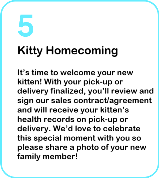 At Kittens for Sale USA, we believe adopting a kitten is more than just finding a pet—it’s about welcoming a new family member. With our deep commitment to ethical breeding, transparency, and feline well-being, we connect families with healthy, sociable purebred kittens. Our passion for cats and years of expertise ensure you experience a smooth, joyful adoption process, filled with love and support. Let us help you find your perfect companion and create lasting memories.